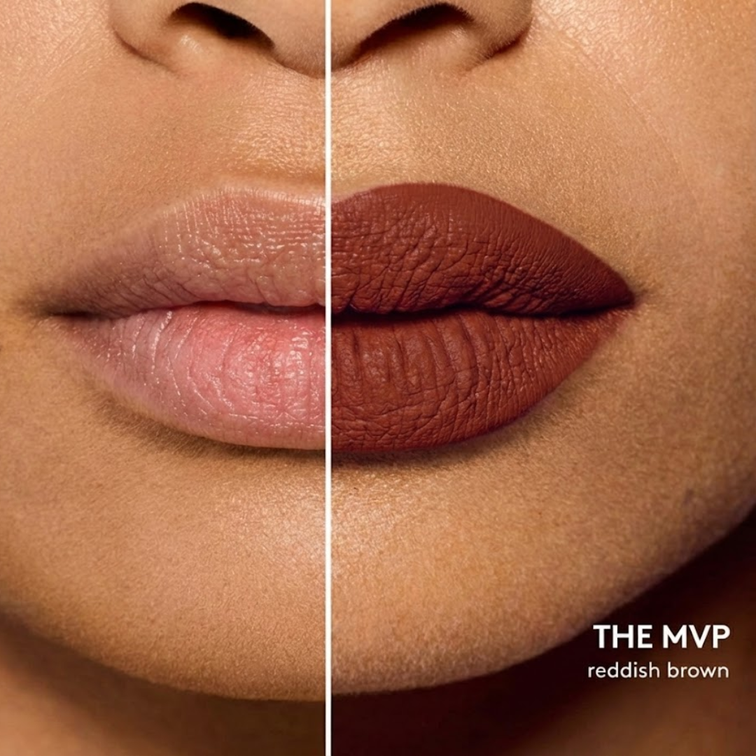 See instant transformation—from bare lips to perfectly defined, matte color with plump, delicate appeal.