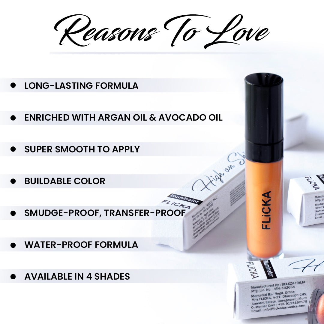 A little goes a long way, with our High On Shine Liquid Illuminator that will make you shine as bright as the star you are! A few drops of this will add instant radiance to your skin without showing any glitter.